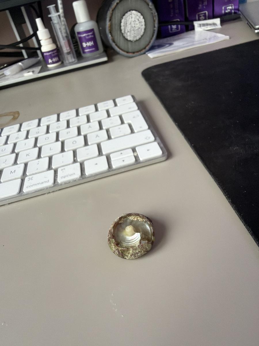 Här kommer ett klassiskt misstag och anledningen till att de flesta akvarier byggs med minst två ”ner rör” , när jag köpte det här akvariet hade jag faktiskt inte koll på att det bara hade ett. Så det börjar med att ATO-enheten larmar att den fyllt på för mycket utan att nivån återställs i sumpen, jag trodde det var nå bös som satt sig så att sensorn inte reagerade.. så jag nollställde så den fyller på mer men samma hände igen varpå jag nollställde larmet ännu en gång och jag tror efter 3:e eller 4:e ggn så blev jag minst sagt varse om problemet, vatten pumpades upp men det kom inte tillbaka ner till sumpen för det var stop i röret.. visningsdelen fylldes med vatten så att det började rinna över sidorna, fyfan sån stress när det börja rinna ner på alla eluttag med mera.. visa sig att det var ett skal från en turbo snäcka som mest troligt suttit där sen tidigare ägare men nu hamnat på så sätt att den stoppa flödet. Höll på länge med hammare och mejsel för att försöka få ut skalet, till sist lyckades jag blåsa ut den. Allt klara sig bra förutom att salthalten rubbades något. Borde vara olagligt att göra akvarium med ett rör ner.