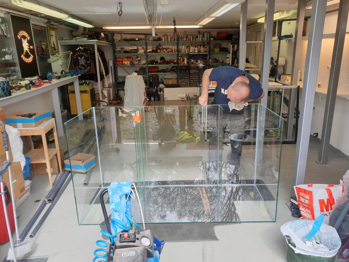 14. Haha !!! Kul att det uppskattas. Jorå, det kan man ju säga. Vi var 6 st för att lyfta burken. Har även en egen svetsad stål stativ under akvariet som väger asmycket. Kommer bilder på det senare.