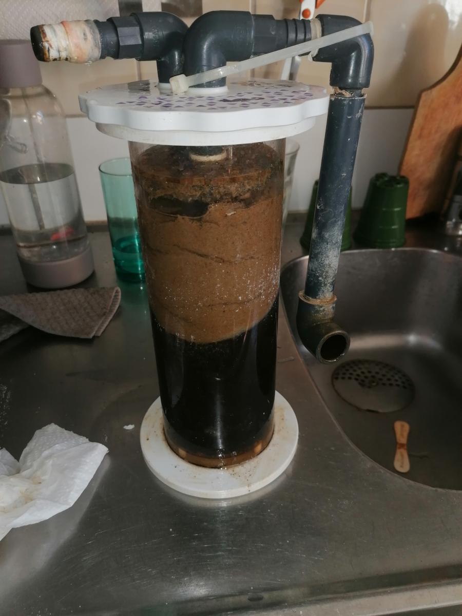 Den långsamma doseringen av etanol i inloppet till min reaktorpump har definitivt förändrat hastigheten på bakterieuppbyggnaden i min filtervadd. Normalt är det dags att byta den efter 9-15 dagar och då kan den ibland vara så tät att den komprimeras av pumpens vattentryck. Nu har detta hänt efter bara 2 dagar. Jag kommer dock inte att byta vadden än - det får vänta några dagar till. Vad gäller min fosfathalt är resultaten lite - som vanligt - förvirrande. Jag vet inte om detta beror på mätfel och dålig hantering av proverna eller något annat. Igår visade mätningarna en ökning av fosfathalten från 0,19 ppm till 0,26. För att vara på den säkra sidan och utesluta de vanligaste orsakerna till mätfel fyllde jag provtagningsröret med citronsyra över natten och ändrade mina provtagningsrutiner lite. Resultatet blev att testet idag bara visade 0,13 ppm - en halvering av värdet under 24 timmar. Detta är osannolikt men om det är gårdagens eller dagens värde som är mer fel vet jag inte. Eftersom jag bytte filtermaterial för två dagar sedan (vilket minskade bakteriebiomassan) förväntade jag mig ett stabilt värde eller en liten ökning igår, men denna berg-och-dalbana verkar osannolik om man inte tar hänsyn till mätfel. Två dagar sedan Idag MVH Lasse