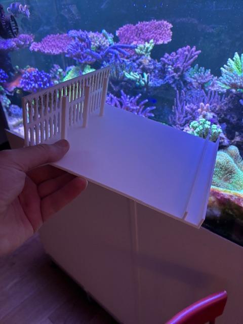 Ispirerad av @saltatrox så tänkte jag att jag behövde fixa till ett bättre skydd för överrinningen. Jag har därför printat ett antal av dessa (första tesprinten var vit, resten i svart) Längst till höger är så att jag kan sätts den över glaset på bakkanten av överrinningslådan som inte har en eurobrace. På vänstersidan är några pelare som står på insidan av kammen. Längst till vänster är en kamm som sätts nära eller mot akvariets kamm.